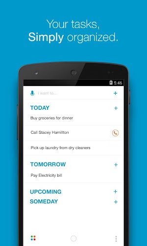 Millions use Any.do every day to remember all the tasks they want to-do and make sure they get them done. Key benefits: Seamless cloud sync, Speech recognition, Web App access on your computer, Alerts, Any.do Moment, Snooze tasks, Google Task Sync, Notes, Sub tasks, Amazing Widgets, Repeating / Recurring Tasks, Missed call, Auto complete, In app actions, Gesture support & much more!