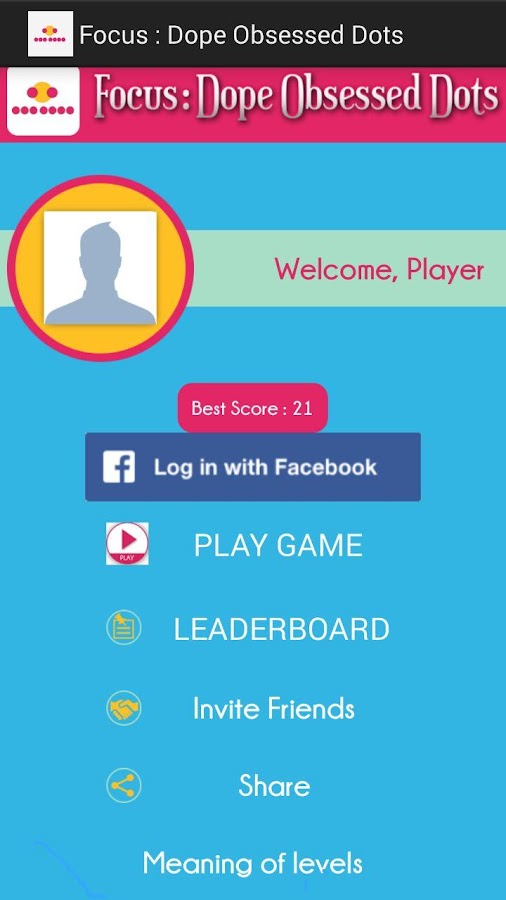 FOCUS : Dope Obsessed Dots is a simple coordination & concentration game, as well as the ultimate test of agility, reaction and reflex. Just quickly tap the dots as they change color to increase your score and reach max. Be careful, though, because letting too many change color will end your game. And make sure you watch out for those pesky blank! How long can you last?