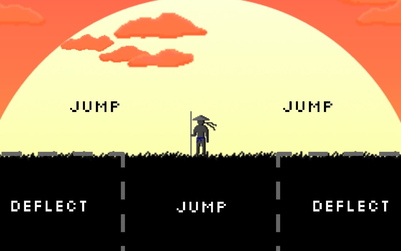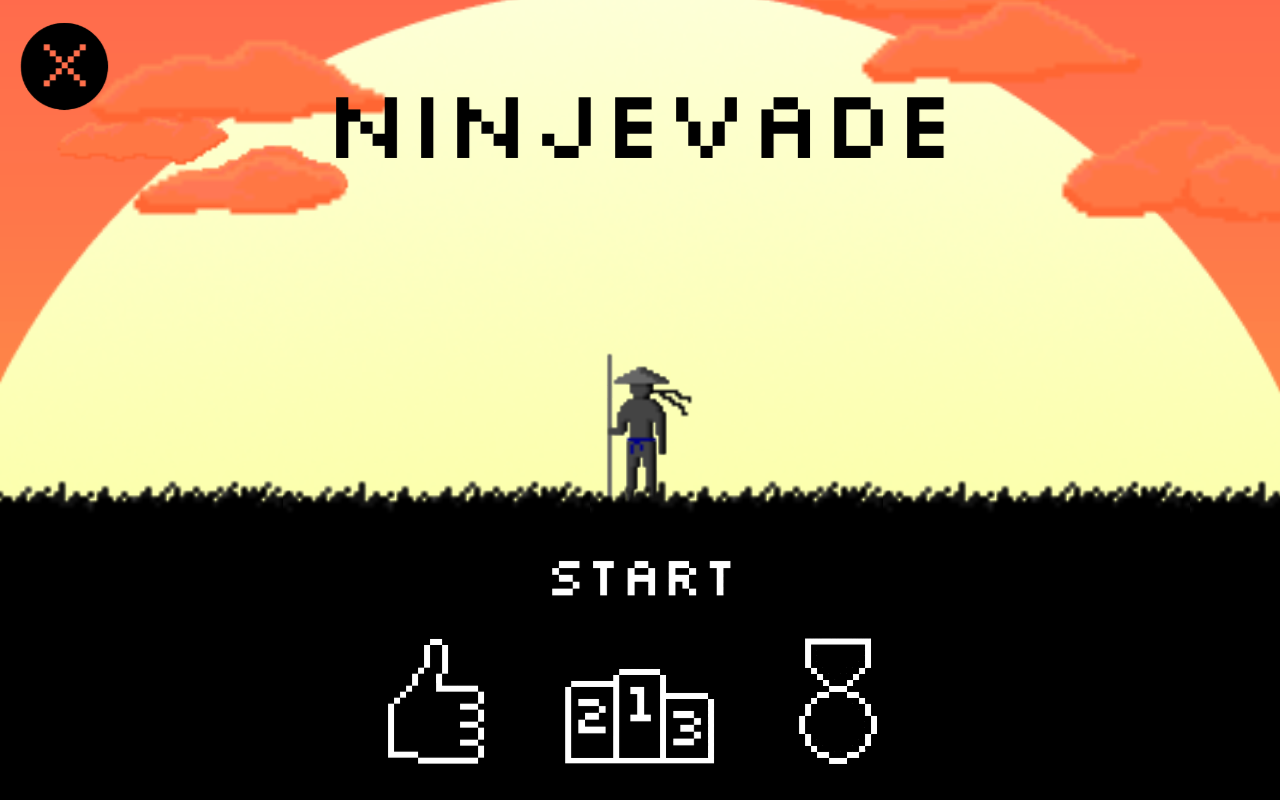 Ninjevade is a simple yet challenging reflex game about jumping over and deflecting ninja stars to defeat your opponents and score points!