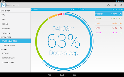 : The most beautiful and versatile System Monitor for Android. This application provides real time system load statistics in the form of text and graph.